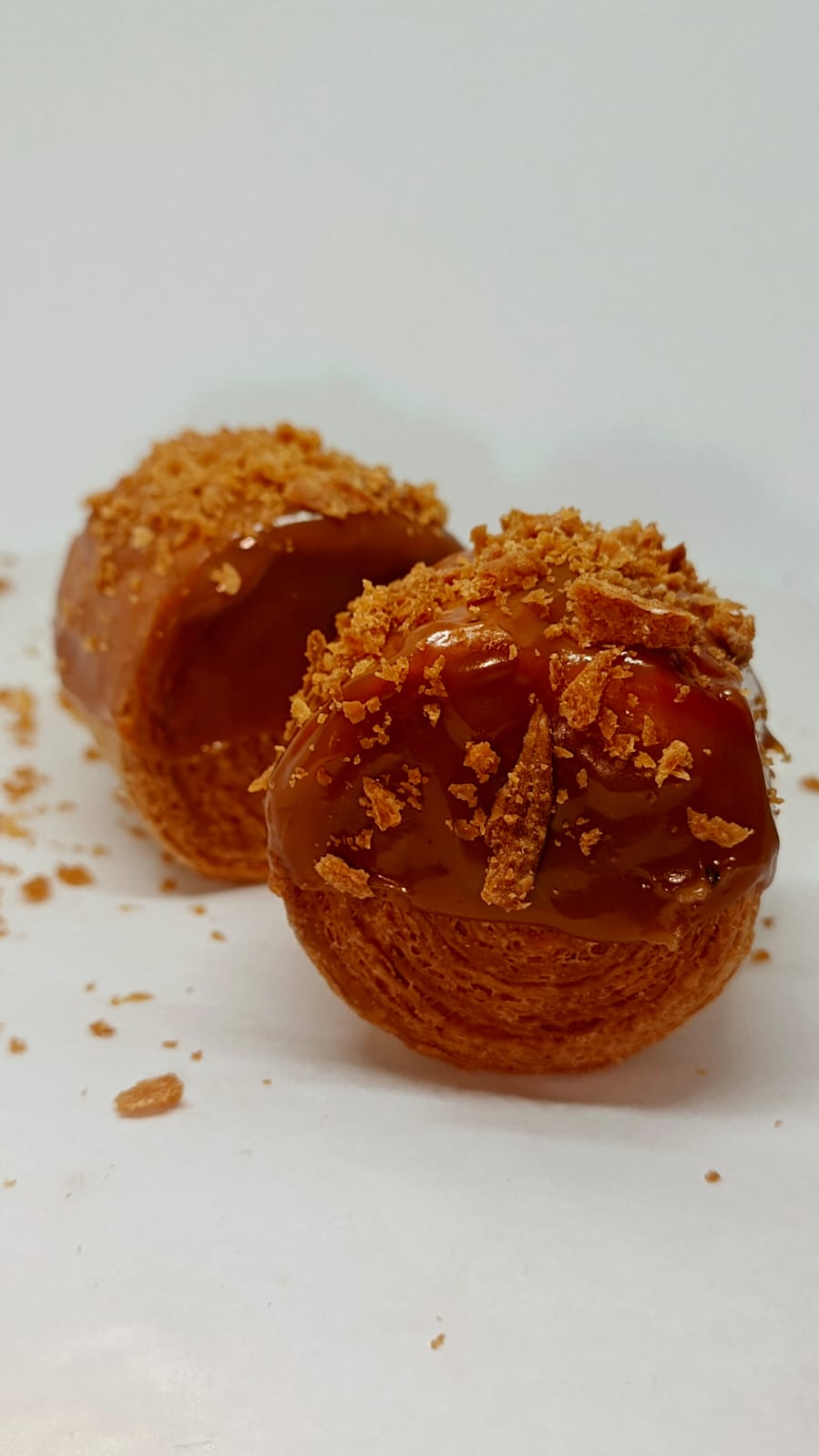 Auténtico sabor colombiano con nuestra masa danesa rellena de la suave Leite Creme, cubierto con una ligera capa de arequipe y decorado con coco o virutas de hojaldre.